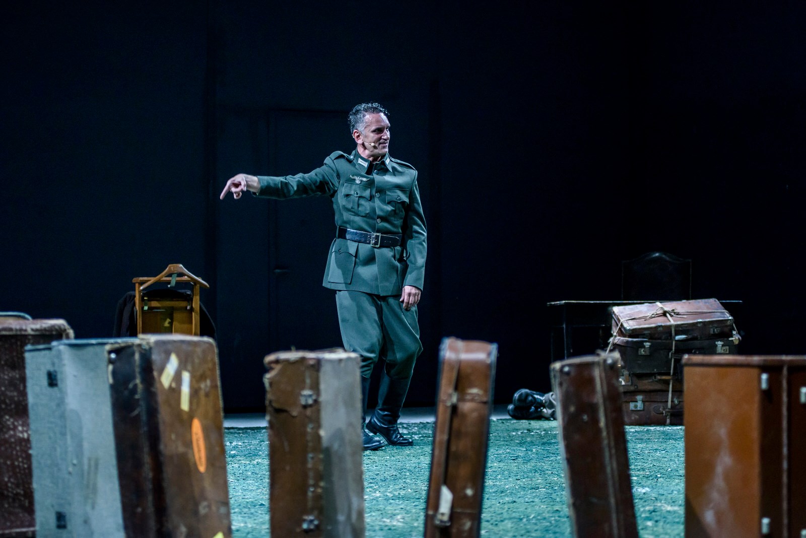 Το έργο του Χουάν Μαγιόργκα αντανακλά με ακρίβεια στο πρόσωπο του Διοικητή την εγωιστική υπεροχή που χαρίζει η κλασσικής παιδεία σε αυτούς που γέννησαν το μεγαλύτερο άγος της ανθρωπότητας: το αδιανόητο Ολοκαύτωμα. Ο Νίκος Ψαρράς με την καταπληκτική του ερμηνεία ενσαρκώνει ιδανικά τη διαστροφική φύση του Διοικητή, ενός χαρακτήρα που συνδυάζει την αδιανόητη καταβαράθρωση της ανθρωπιάς με την πνευματική υπεροχή της κλασικής του παιδείας. Σύμμαχος του Ψαρρά σε αυτόν τον “διπολικό” ερμηνευτικό θρίαμβο είναι αναντίρρητα η μεγάλη θεατρική του εμπειρία, η εμμονή του σε “δύσκολους” ρόλους, η σωματική και κινησιολογική του ευκολία και η βαθιά μελέτη του ρόλου. Στη συγκεκριμένη παράσταση ειδικά η τοποθέτηση του σώματος του Ψαρρά είναι ένα από τα βασικά στοιχεία τεκμηρίωσης αυτού του διπολικού και διαστροφικού ήρωα, καθώς ερμηνεύει με σχεδόν χορογραφημένο τρόπο τον ζοφερό φιλόσοφο, τον μαέστρο μίας φρικιαστικής συμφωνίας, τον σκηνοθέτη μίας αισχρής “θεατρικής” παραπλάνησης με σκοπό να αποκρύψει το τέρας που ο ίδιος γεννά και εκτρέφει.